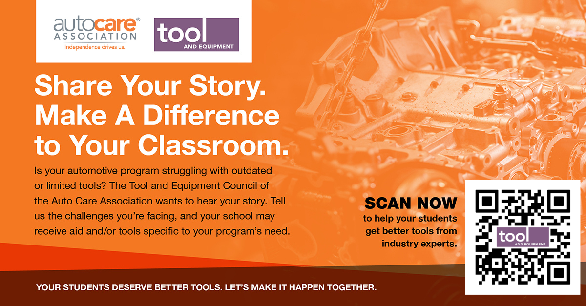 “The Auto Care Association’s Tool and Equipment Community recognizes how important it is to address the current technician workforce shortage in our industry today,” said Joe Sabo, chair, Tool and Equipment community, Auto Care Association. “That’s why we—as well as our valued members—are focused on attracting, retaining and growing the next generation of automotive technicians. We hope this new Tool and Equipment vocational grant will help our vocational career schools and colleges better prepare these students for those careers.”